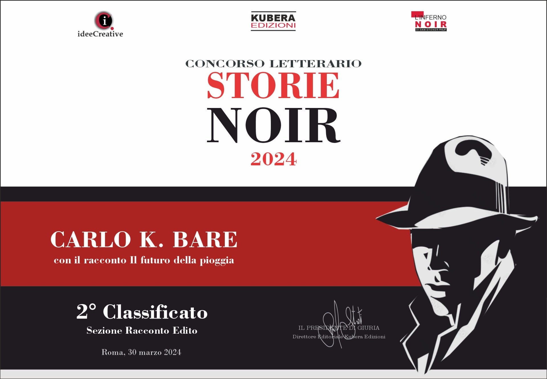 Il racconto noir 'IL FUTURO DELLA PIOGGIA' viene premiato nel concorso 'Storie Noir 2024' nella categoria racconti editi.